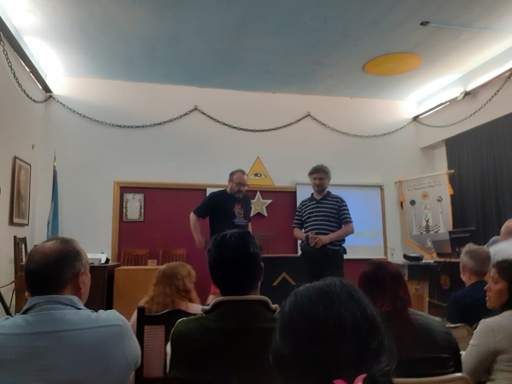 Walter Trusoni (profesor de derecho y sustentabilidad en la MTUS de facultad de ingeniería), fue el primero en abrir la charla y presentar a sus compañeros, participo también del corto proyectado. Donde niños de India hicieron un proyecto y plantaron árboles para ayudar a Argentina y Chile, filmado por Lisandro Olivera (director de cine) que presente en esta jordana participando como fotógrafo.