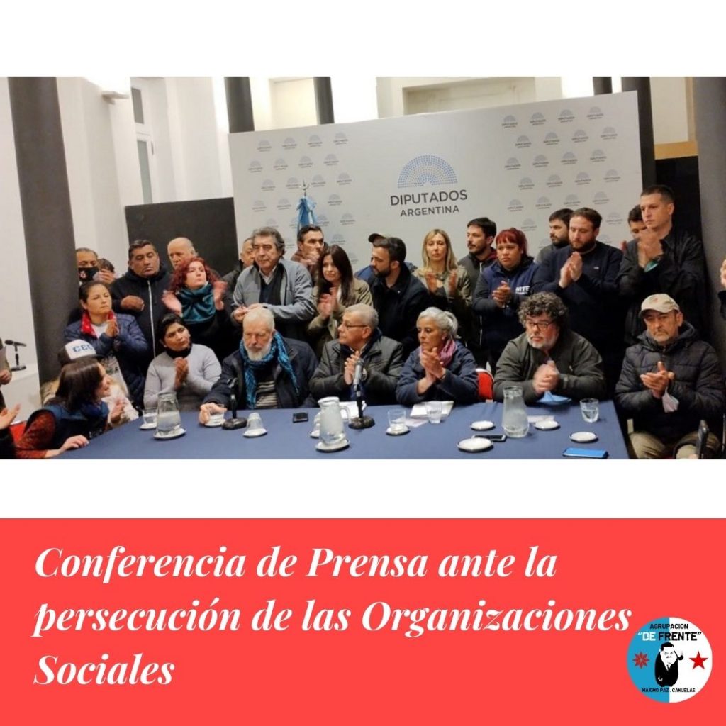 Este jueves a partir de las 11 hs se llevo adelante una conferencia de prensa en el Salón Blanco de la Cámara de Diputados para rechazar la política en curso de criminalización y estigmatización a las organizaciones sociales.