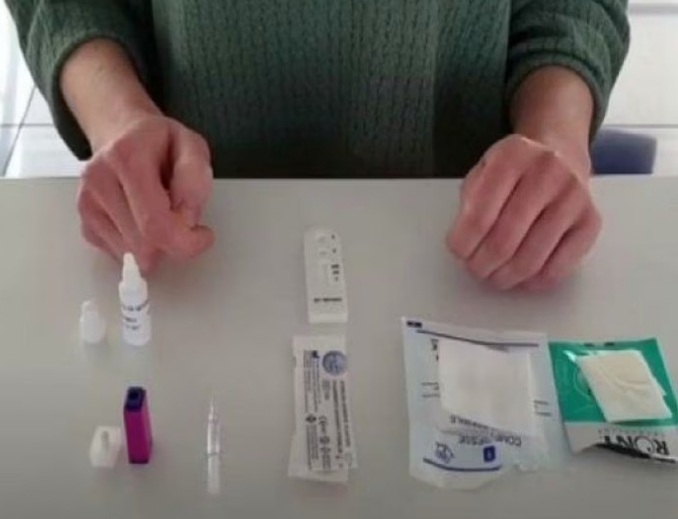 •Luego, ese hisopo se introduce en un recipiente con un líquido buffer que se incluye en el test. Esa gota se vierte en el cassette donde está el test