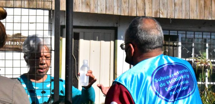Durante la jornada de hoy, compañeros de la Agrupación DE FRENTE, participaron de una nueva actividad del programa nacional “El Barrio cuida al Barrio”, esta vez en La Torre, Maximo Paz. Antes de salir a relevar se le tomo la temperatura a todos los compañeros voluntarios, de la CAAC “Jhon William Cooke” y de la Agrup. De Frente. Realizaron relevamientos de las distintas necesidades de los vecinos, se entrego alcohol en gel y folleteria de prevención sobre el COVID, ademas de fumigar espacios comunes y comercios de proximidad, acompañando a personal de la Subsecretaria de Hábitat y Economía Popular a cargo de la compañera Ferraro.