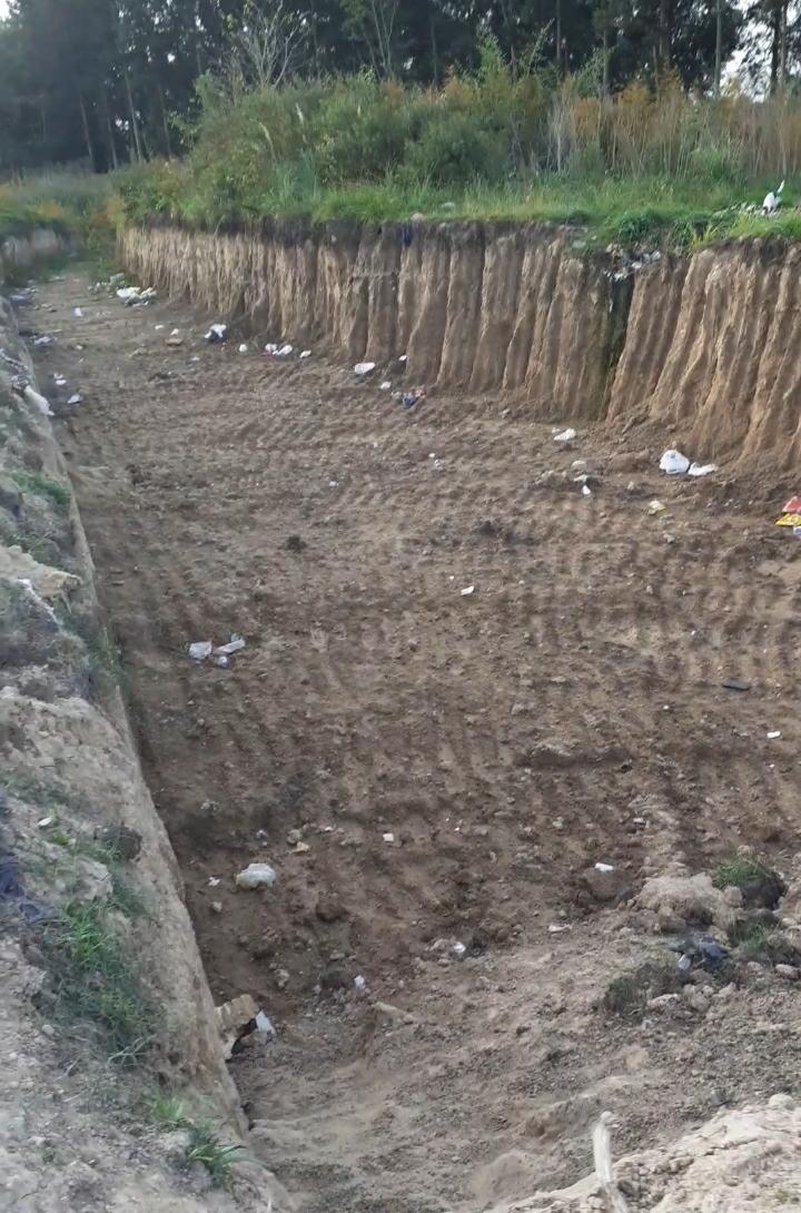 Volviendo al panorama con el que nos encontramos, llegamos hasta el lugar, nos encontramos a primera vista con un zanjón en medio de dos terrenos, destinados a la plaza del barrio y a una canchita de fútbol, infaltable el potrero. Este pozo de gran tamaño bien en el medio nos llamó la atención, además de la basura que se desemboca en semejante agujero. El tema no terminaba allí; unos metros más adelante vemos montañas de tosca y el famoso zanjón, digno de película donde se buscan restos fósiles, de aprox 5 metros de profundidad, y casi 200 metros de largo, bordeando el arroyo Cañuelas.