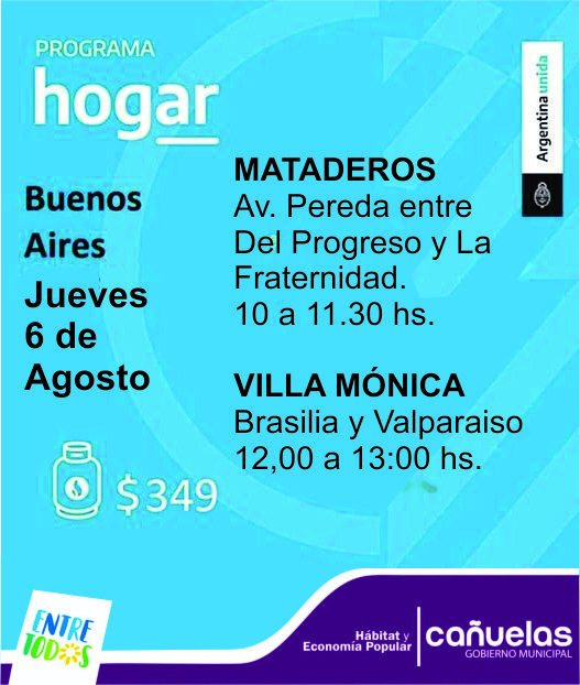 gas 6 de Agosto Seguir leyendo Anterior El Programa Hogar en Cañuelas. Deja una respuesta Cancelar la respuestaTu dirección de correo electrónico no será publicada. Los campos obligatorios están marcados con *Comentario * Nombre * Correo electrónico * Web