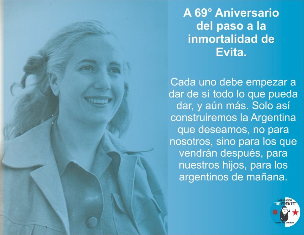 Eva marcó una identidad, no sólo por la lucha en la obtención del voto femenino sino sino por la entrega que marcó su vida y la de lxs argentinxs.