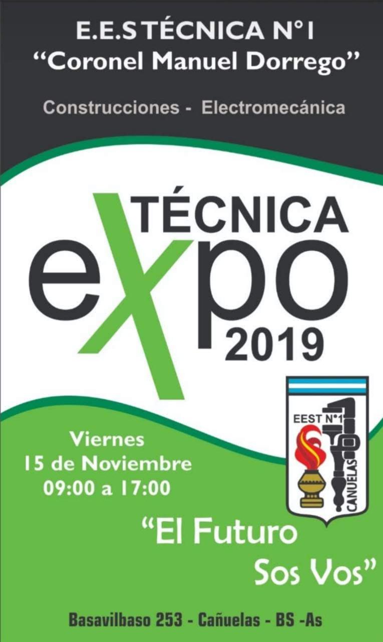 En el día de hoy en la E.E.S. TECNICA n°1 “Coronel Manuel Dorrego” del distrito de cañuelas,e se llevo a cabo la Expo Técnica 2019, donde se pudo ver los distintos trabajos que realizaron los alumnos del colegio en el transcurso de año escolar.