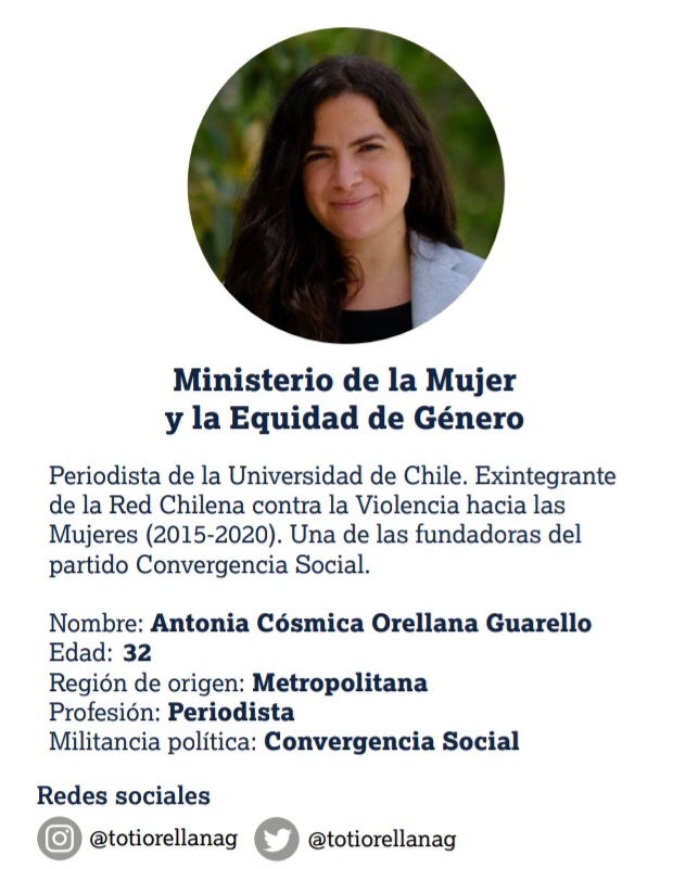 Reportajes Gabriel Boric y su equipo de gobierno 4 años atrás Medios El gabinete tiene 14 mujeres y 10 hombres y un promedio de edad de 49 años. Staff y Editores Medios administrator See author's posts Medios Más historias Destacados Interés general. International Nacional Política Reportajes PROYECTO ARCA- CAÑUELAS 6 meses atrás Maria Fraga Destacados Interés general. International Nacional Política Reportajes Arca Juan XXIII CAÑUELAS 6 meses atrás Maria Fraga Reportajes Repetir la historia 2 años atrás Maria Fraga Deja una respuesta Cancelar la respuestaTu dirección de correo electrónico no será publicada. Los campos obligatorios están marcados con *Comentario * Nombre * Correo electrónico * Web