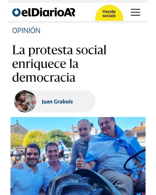 Celebro que el macrismo y la oposición de derecha hayan cambiado de opinión y reconozcan la importancia y la legitimidad de la protesta social. Comparto una reflexión en El Diario AR sobre el “tractorazo”.