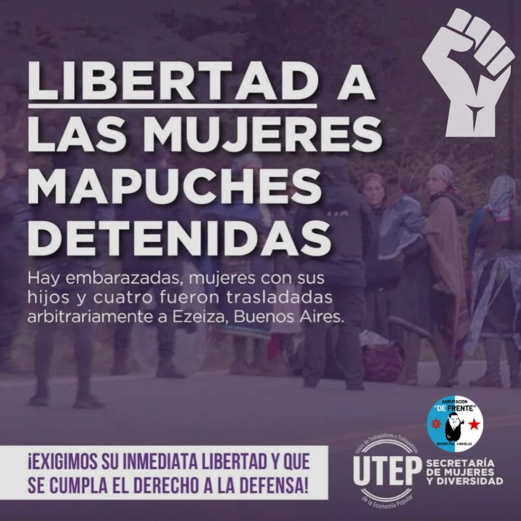 En la noche de ayer, la justicia federal de Bariloche ordenó el traslado a la cárcel de Ezeiza de cuatro de las siete mujeres mapuches que habían sido detenidas en un violento operativo de desalojo protagonizado por las fuerzas federales de seguridad en la comunidad Winkul Mapu en Bariloche dos días atrás. Entre las detenidas hay embarazadas y mujeres con hijos. Se encuentran aisladas y se les está negando el derecho a la defensa. El traslado a más de 1.500 km significa, además, un despojo de sus territorios y vulneración a los derechos de las comunidades.