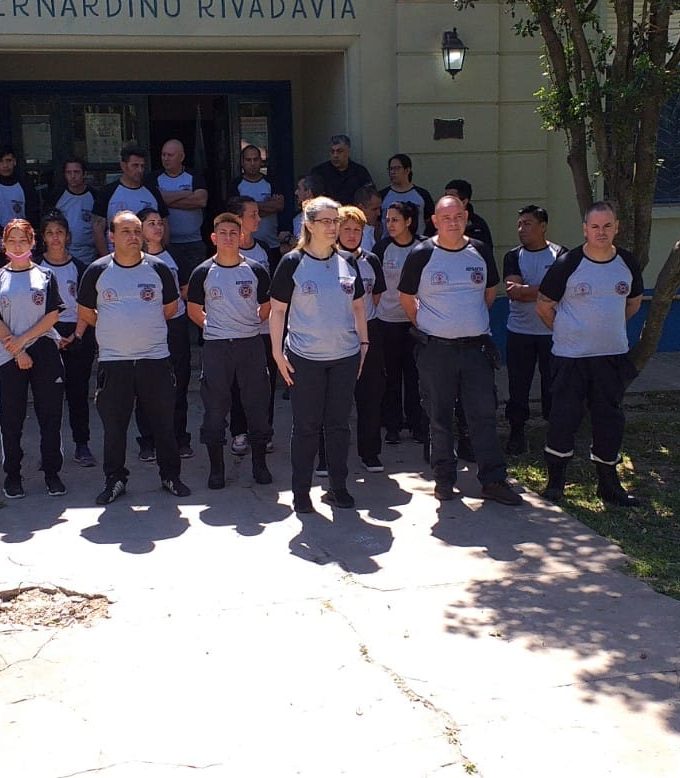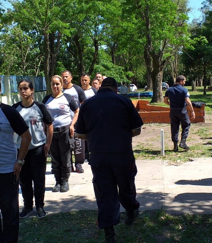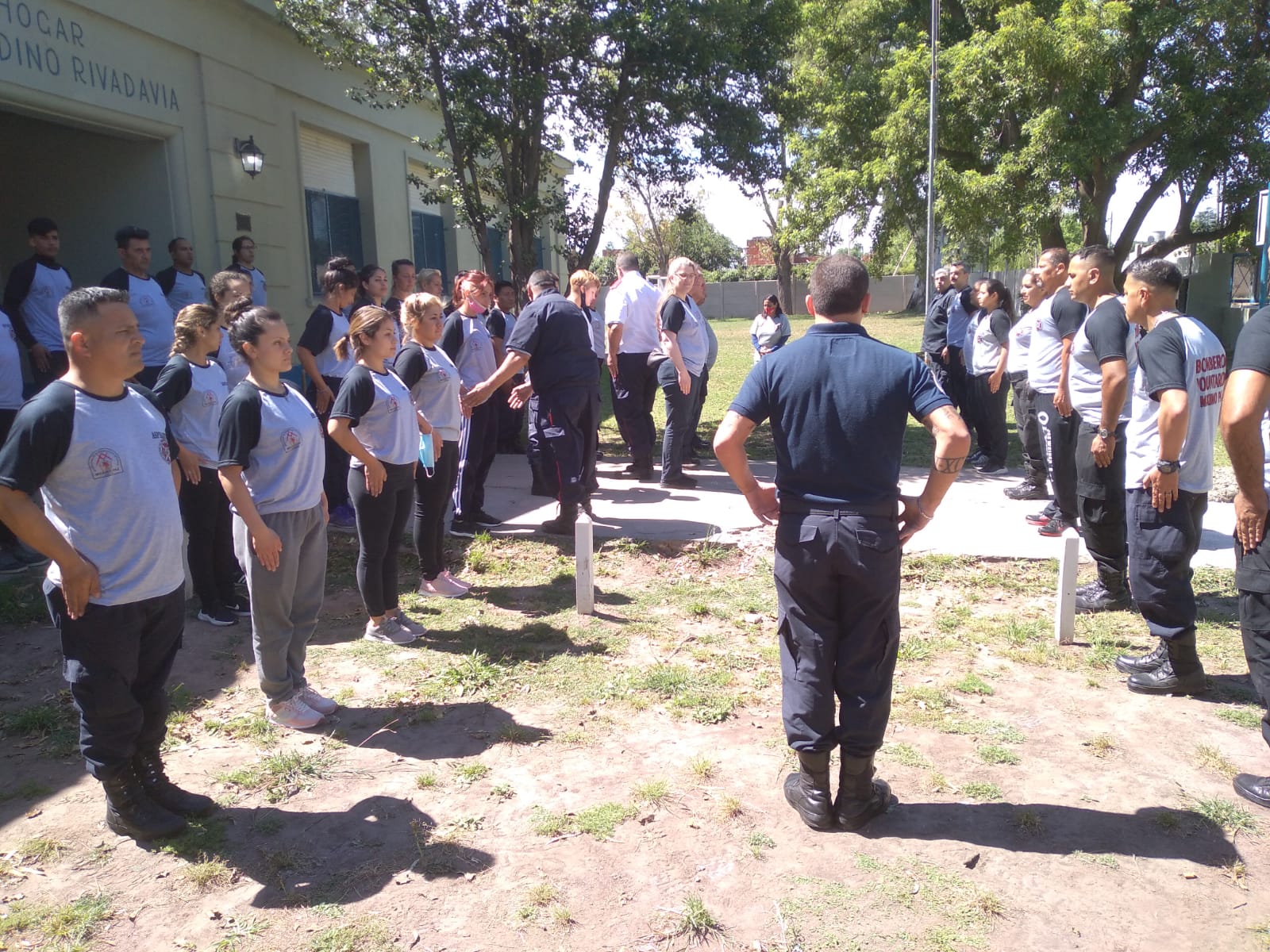 Los futuros bomberos de Máximo Paz en su primer día de instrucción.