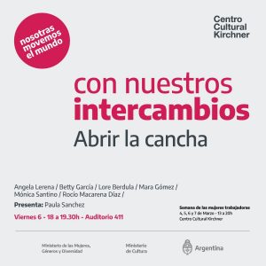 Bajo la consigna “Abrir la cancha”, una de las charlas organizadas en el ciclo “Nosotras Movemos el Mundo” en el Centro Cultural Kirchner, con la moderación de Paula Sánchez, del Ministerio de las Mujeres, Géneros y Diversidad, en la cual participaron las compañeras de La casa de la Mujer Esther de Careaga.