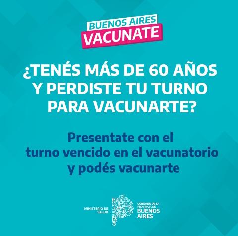 Ante el aumento de casos que se vienen registrando en partido de Cañuelas y la posibilidad de que muchos adultos y adultas mayores no hayan revisado la aplicación Vacunate PBA, el mail o la web de la campaña donde aparece la asignación de turnos, la Provincia tomó la decisión de aplicarla aun cuando el turno se encuentre vencido.